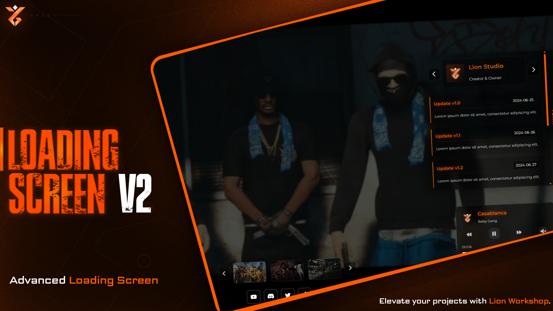 The "Lion Loading Screen V2" for FiveM is a customizable script designed to enhance the loading screen experience for players on FiveM servers. Here are the key features: